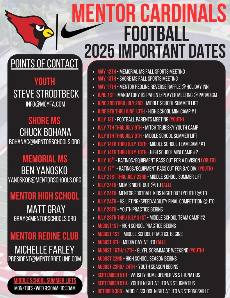 Camp will be coached by members of the High School Football Staff as well as current players from the Mentor High School Football Team.